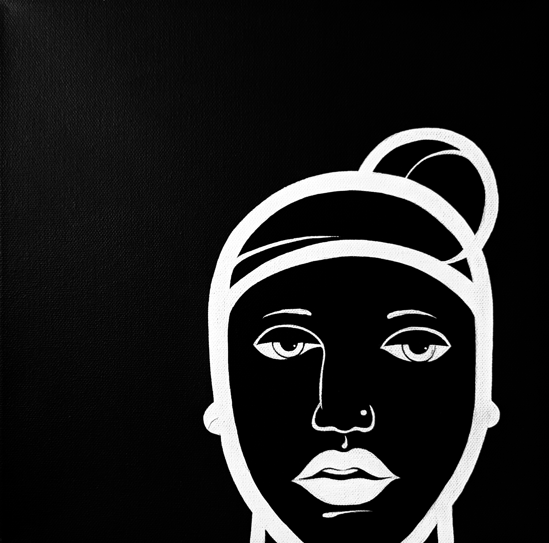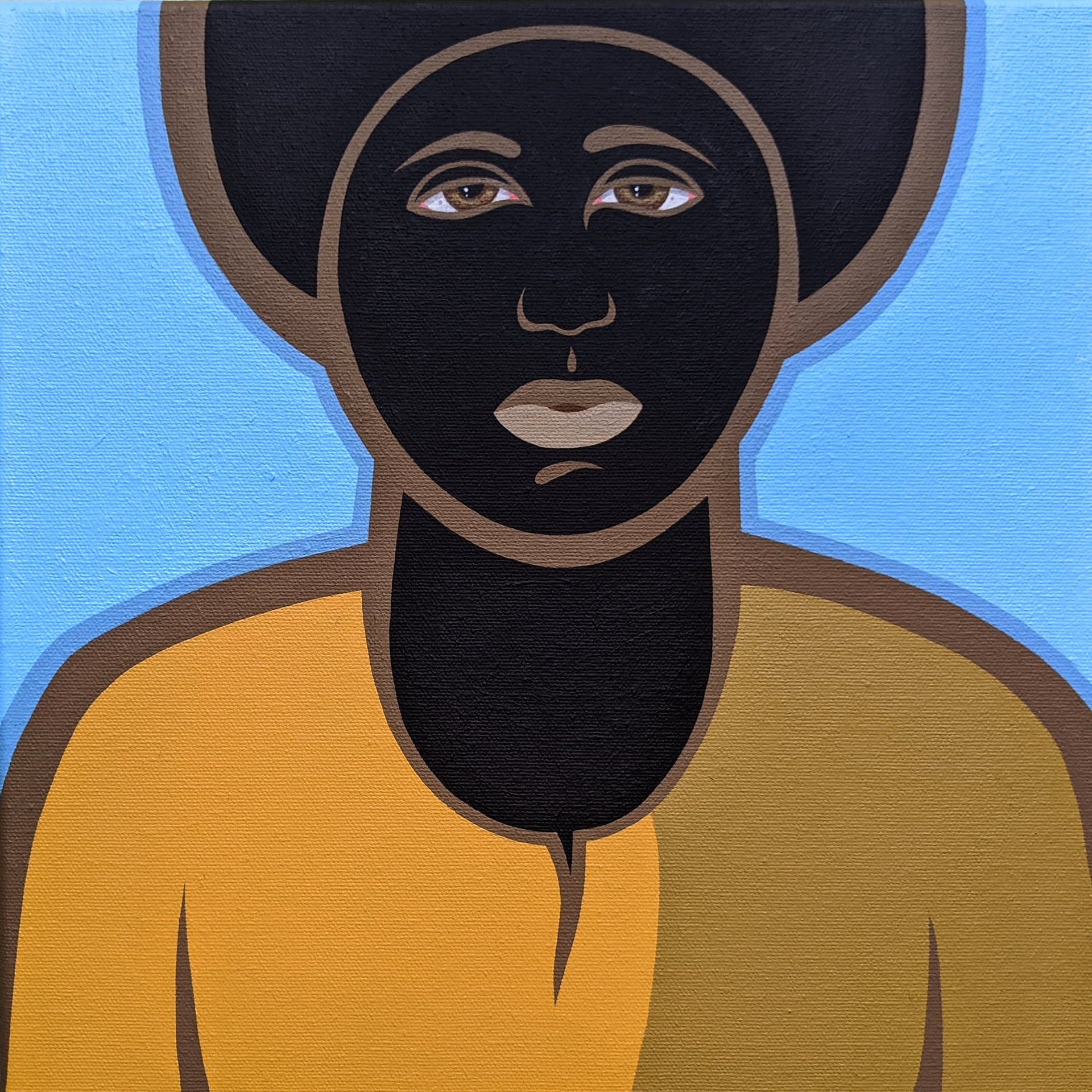 (Left) Black Female Gaze, Acrylic Gouache on Canvas (Private Collection), 12 x 12 - (Right) The Phone Call, Acrylic Gouache on Canvas, 12 x 12