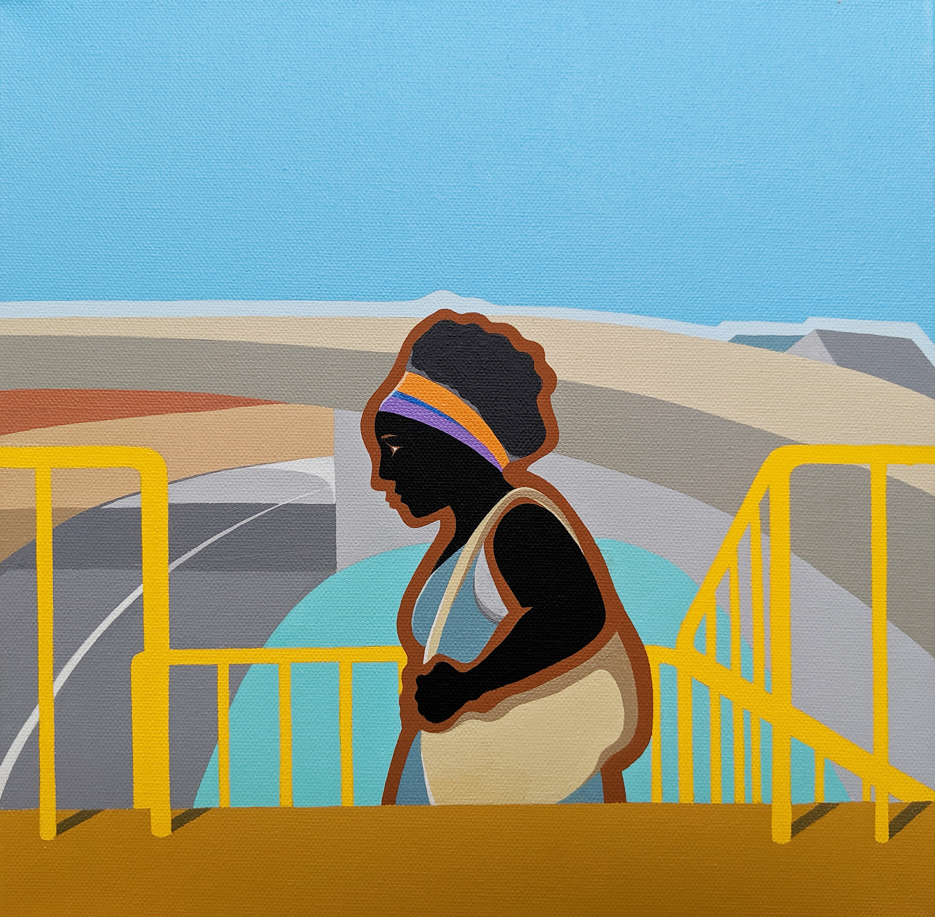 (Left) Woman Ascending Stairs, Acrylic Gouache on Canvas, 12 x 12 - (Right) Mother No, Acrylic Gouache on Canvas, 12 x 12