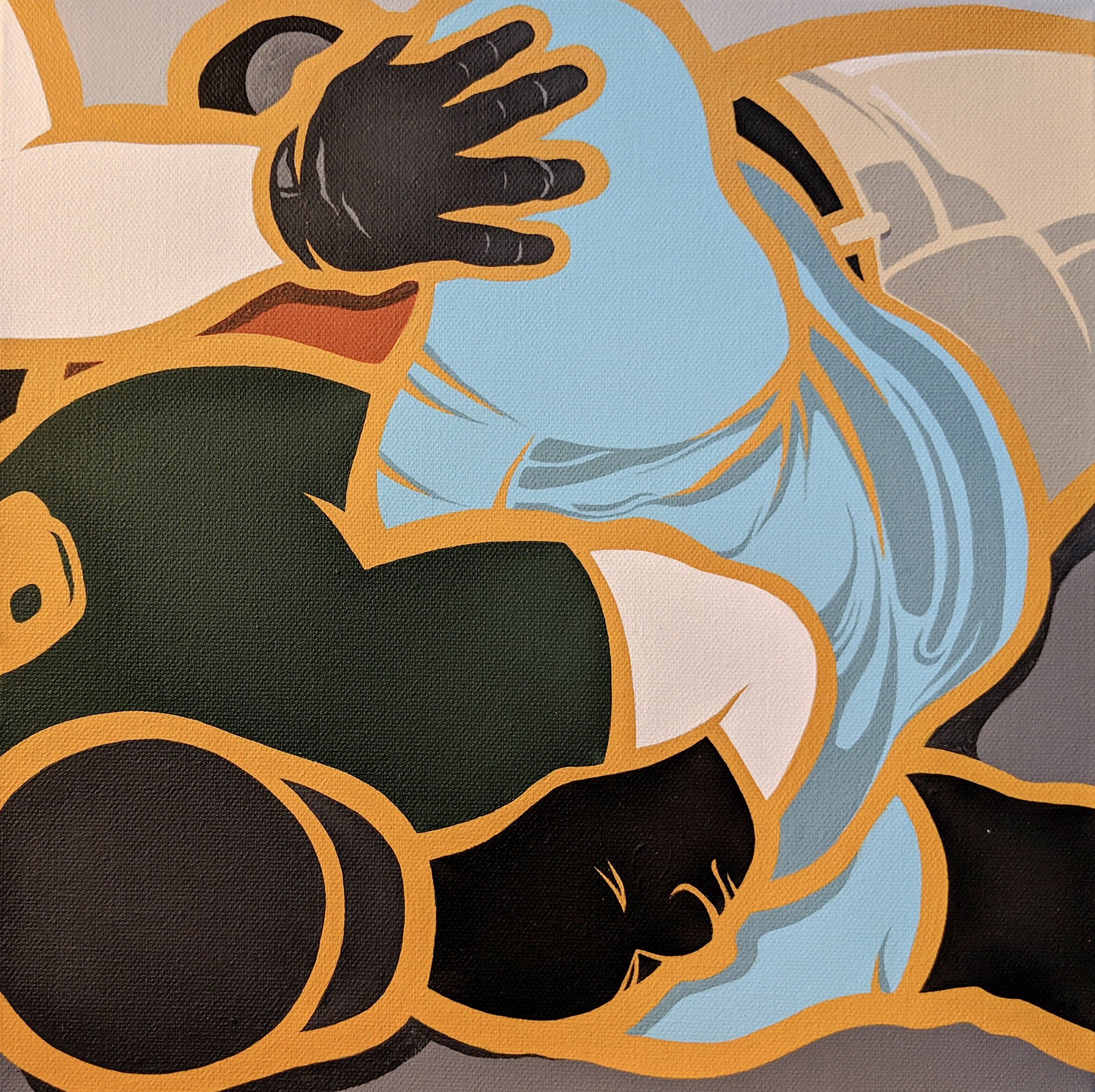 A shower & Rubber Bullets, Acrylic on Canvas, 48 x 48