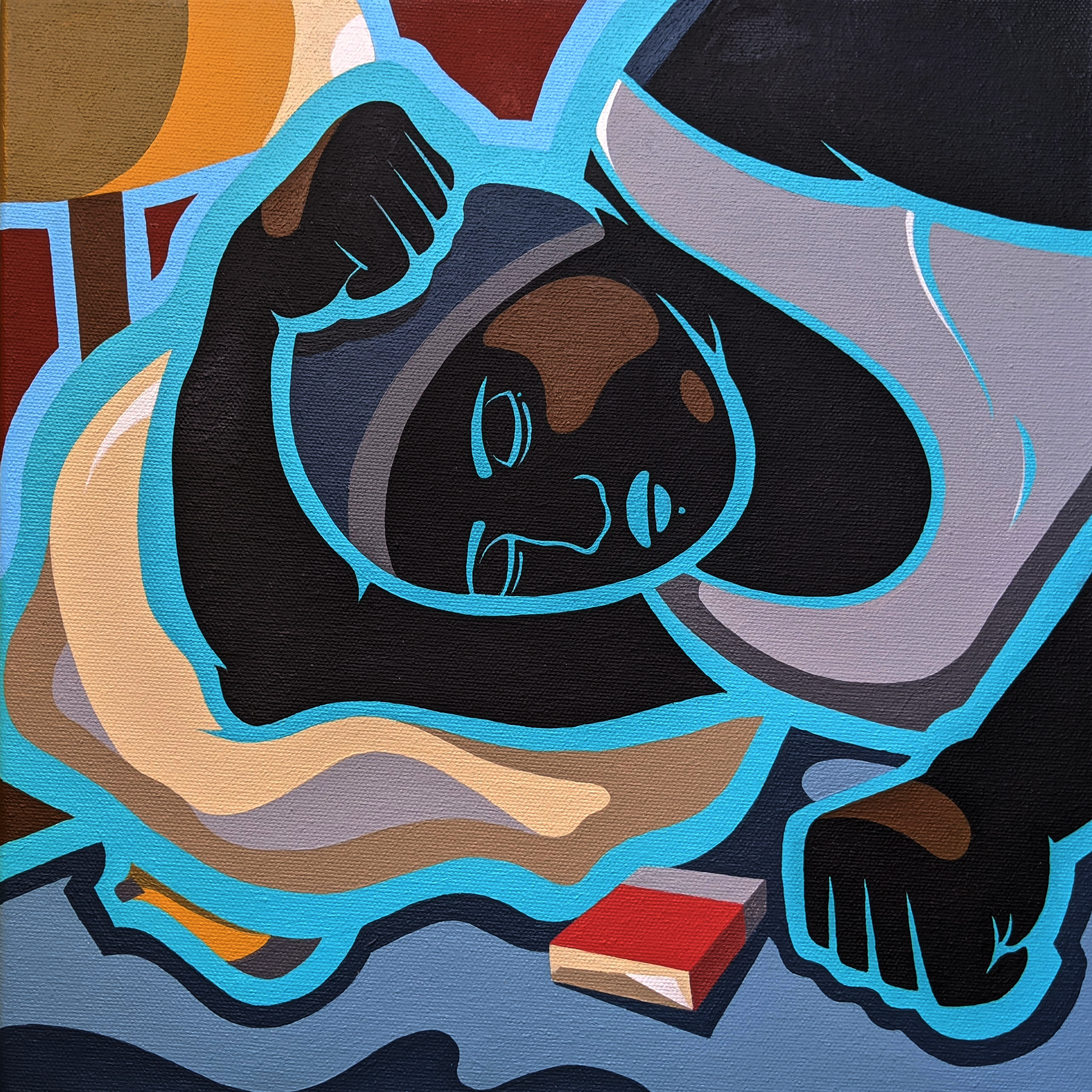 (Left) Momma's Boy, Acrylic Gouache on Canvas, 12 x 12 - (Right) Justified Injustice, Acrylic Gouache on Canvas, 12 x 12