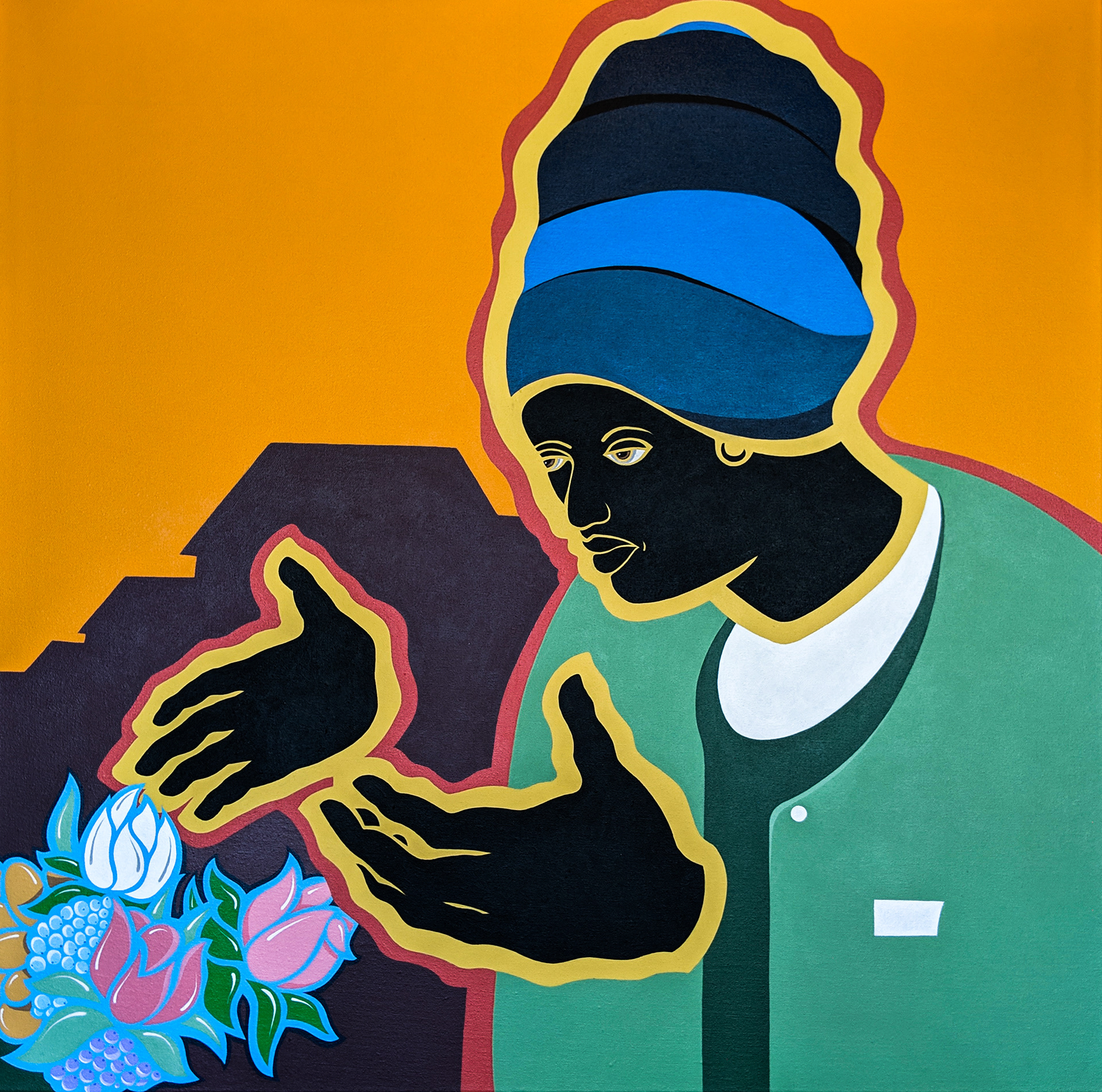 Her Flowers, Acrylic on Canvas, 30 x 30 (In a Private Collection)